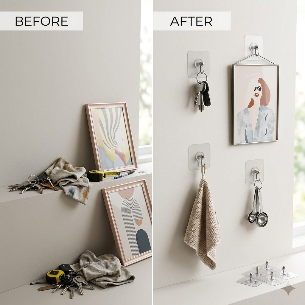• Seamless Aesthetics: The clear adhesive backing blends into any surface, ensuring your mounting hardware stays nearly invisible.