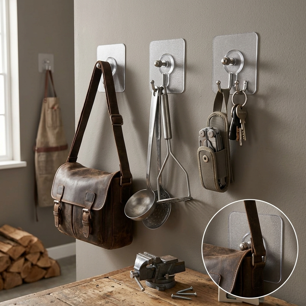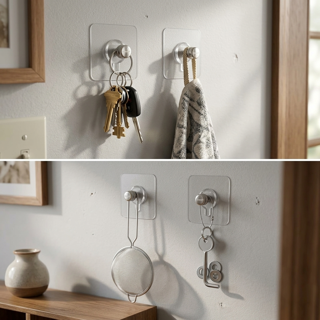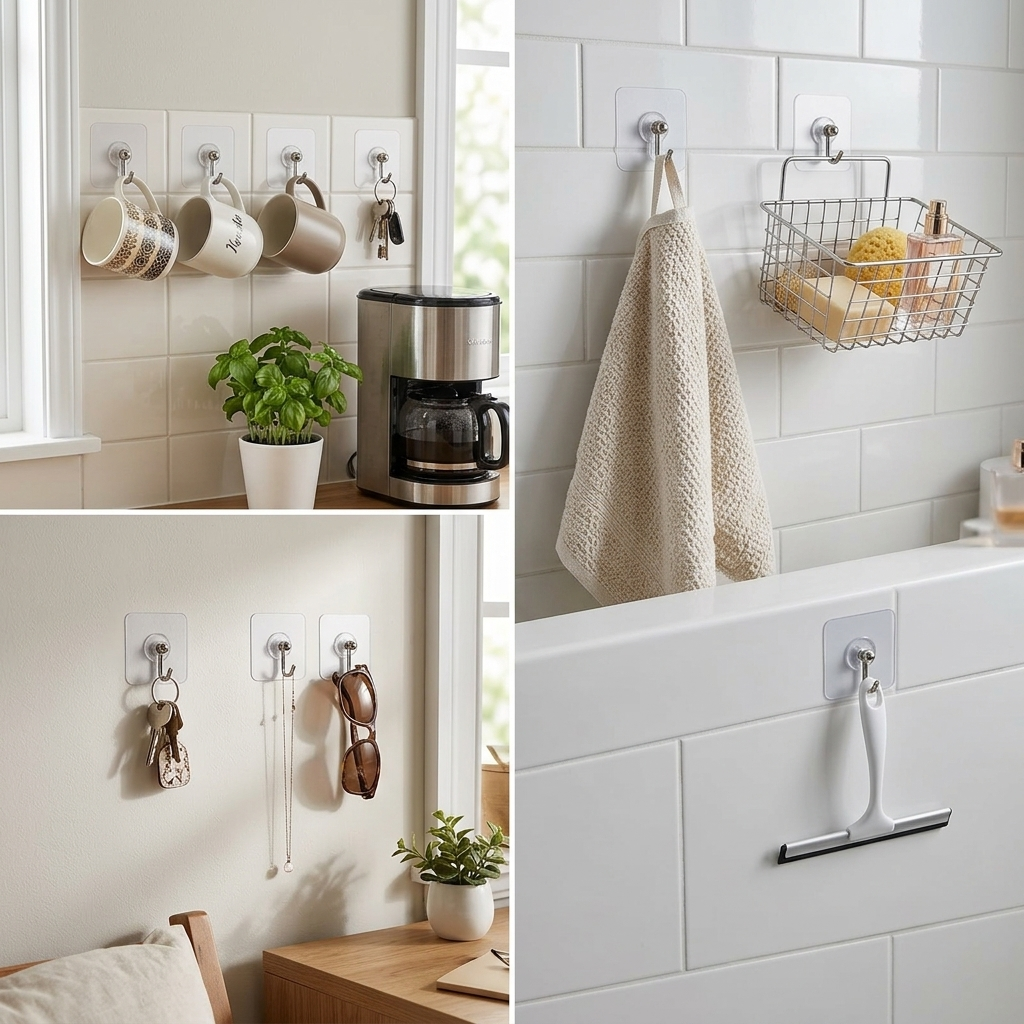 Upgrade your home organization with these heavy-duty Self-Adhesive Screw Hooks. Designed for those who want a secure hold without the permanent damage of drilling, these hooks provide a sleek, “screw-in” look using a powerful, transparent adhesive base.