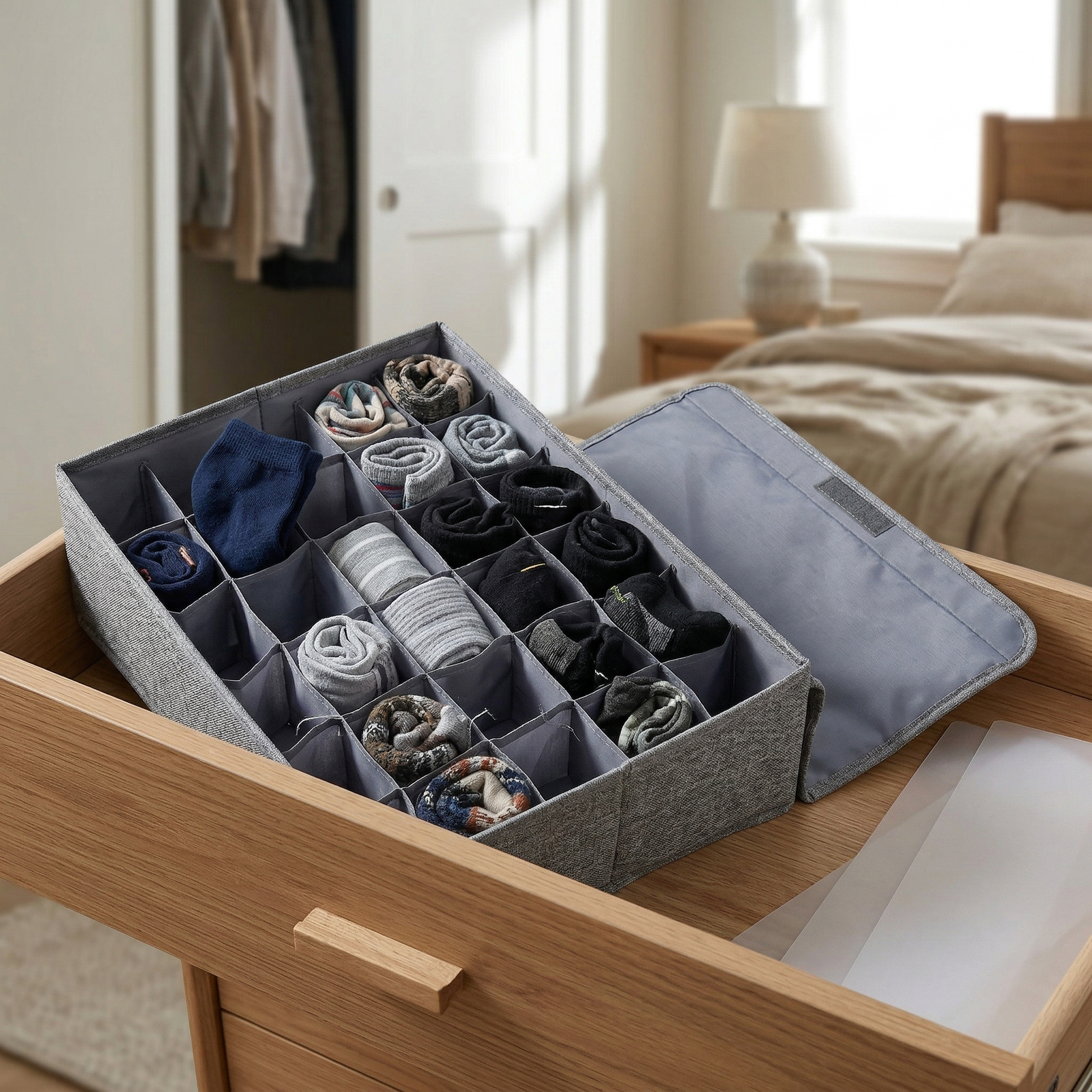 De-clutter your wardrobe and save time every morning with the 4-Grid Socks Storage Organizer. This compact, foldable divider is the perfect solution for keeping your smaller essentials neatly separated, visible, and easy to grab, turning messy drawers into a streamlined storage system.