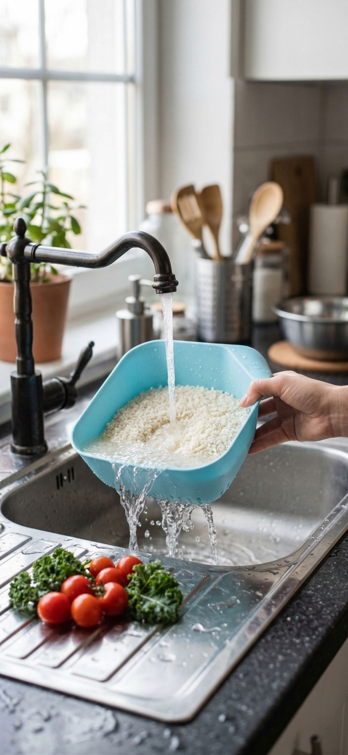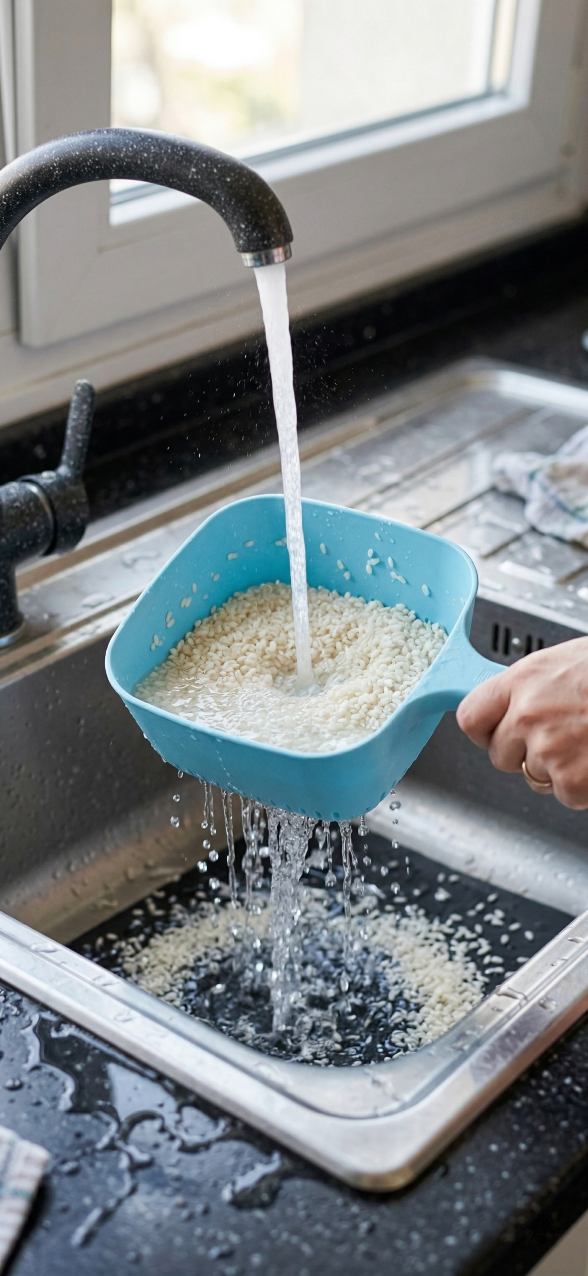 Repeat: Rinse 2–3 times until the water runs clear for the best cooking results.