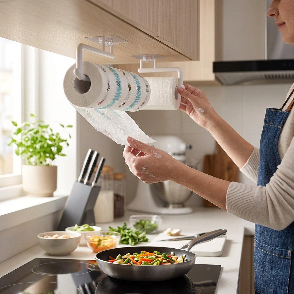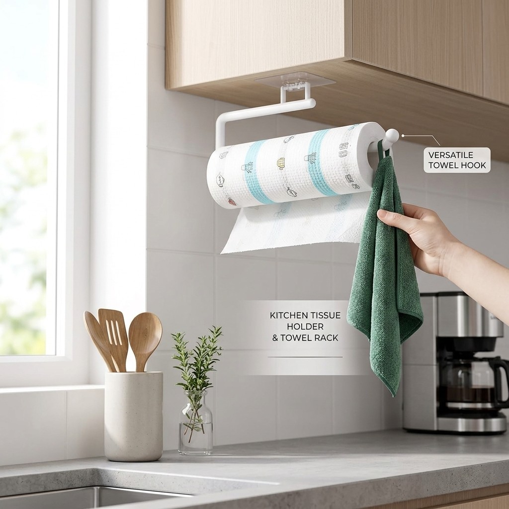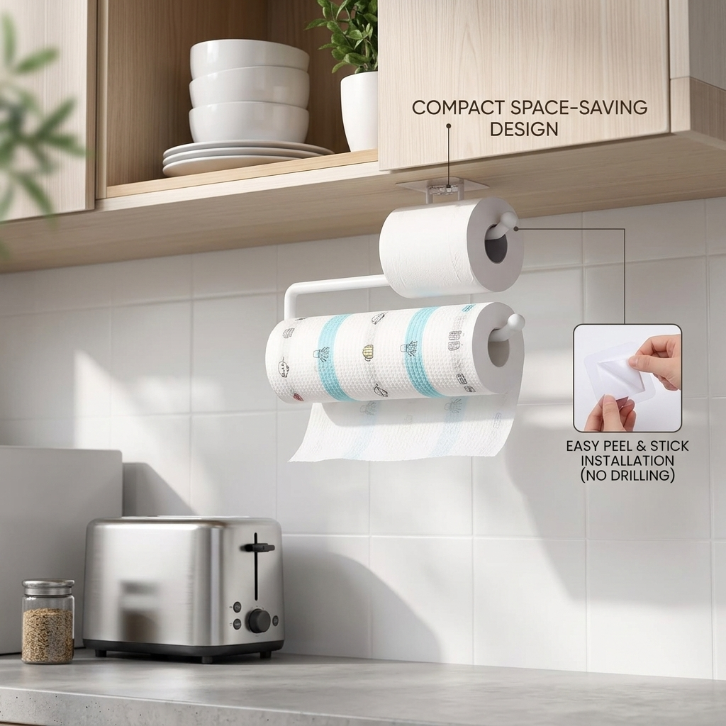 • Versatile Utility: Perfect for holding kitchen paper rolls, hand towels, plastic wrap, or even aluminum foil.